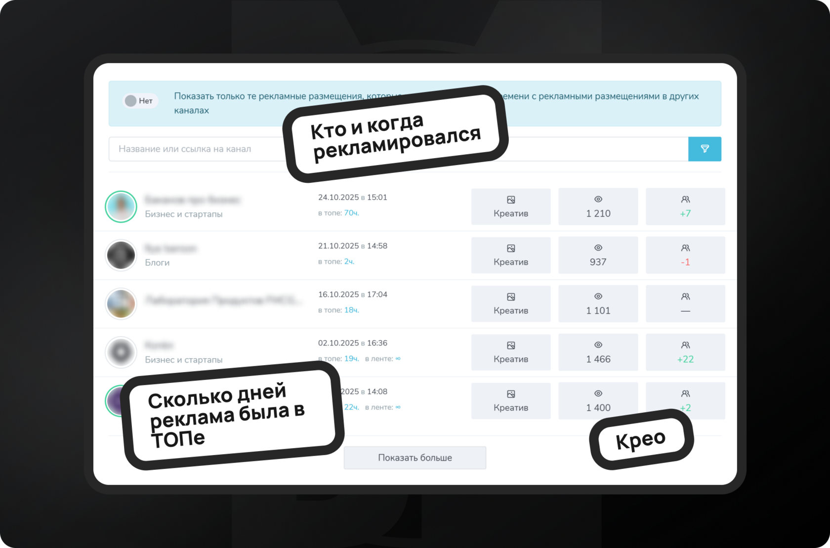 Формально этот раздел создавали для оценки эффективности рекламы в исследуемом канале. То есть перед покупкой рекламы в любом телеграм-канале мы можем оценить, как там размещали рекламу до нас другие люди.